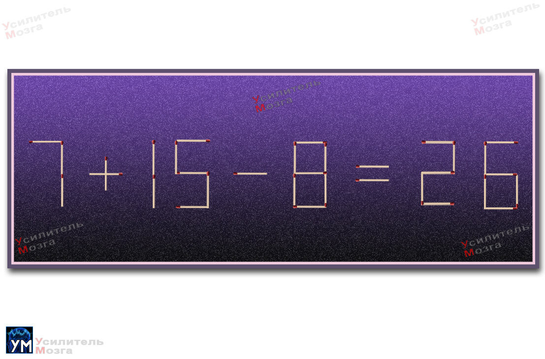А предложим решить очередную головоломку. Потребуется переложить две спички, чтобы равенство стало верным.