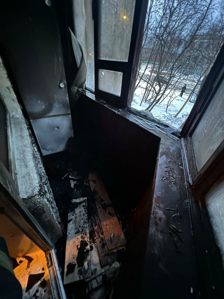 В результате пожара в двухкомнатной квартире огонь повредил домашние вещи на балконе.
