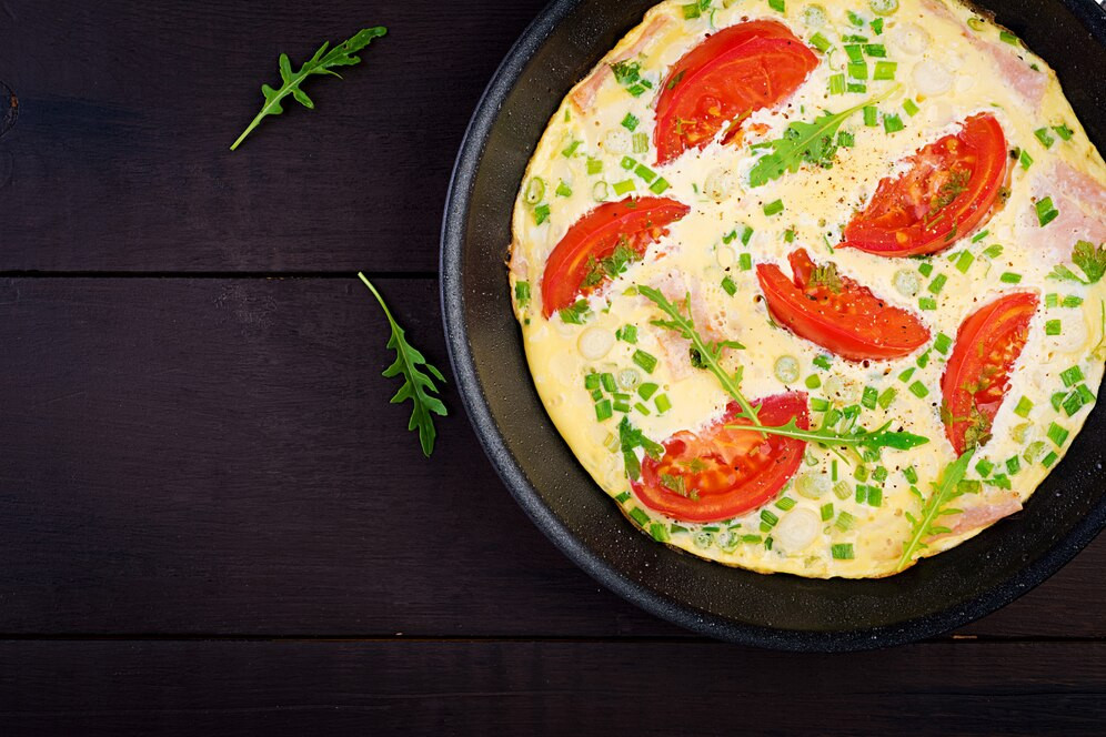 Вам понадобятся: томаты — 6 штук; яйца — 5 штук; лук — 2 штуки; чеснок — 2 зубчика; перец болгарский — штука; соль, зелень и перец — по вкусу; масло растительное — 5 столовых ложки.