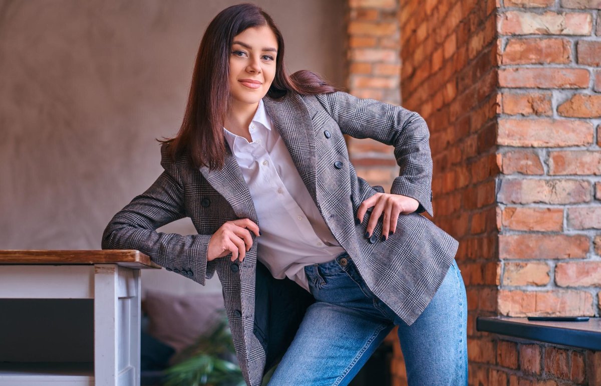 Воздушным особам подойдет вариант с джинсами и летящей блузкой. Блузку можно выбрать с множеством рюшей или одной акцентной деталью, например, объемным бантом в районе плеча.
