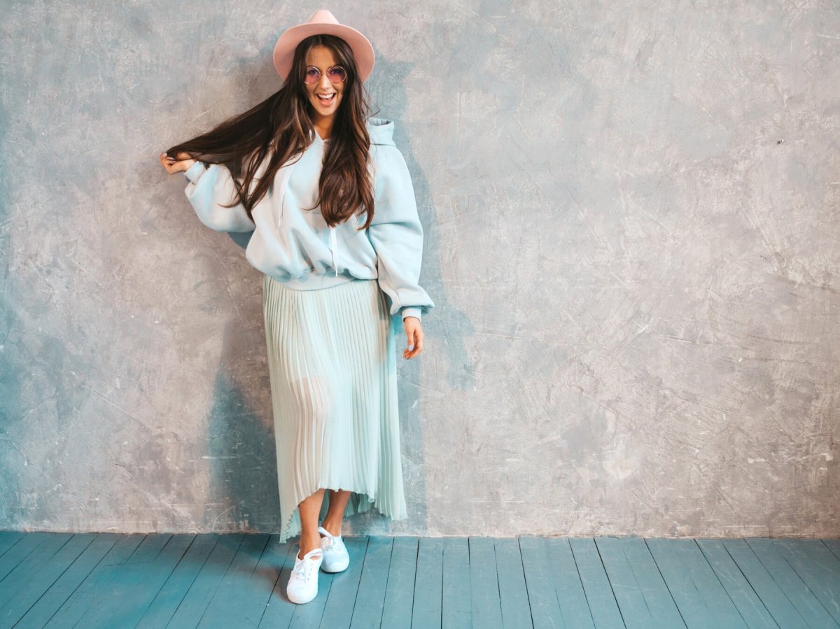 Спортивный шик. Сочетайте классику со спортивными элементами: юбку-карандаш или плиссированную юбку с худи или олимпийкой. Такие комбинации в топе этого сезона.
