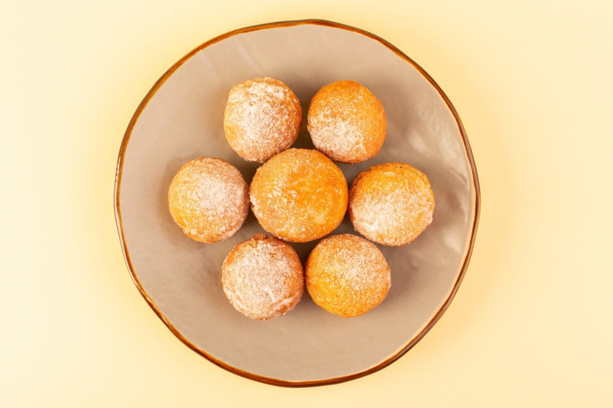 Тесто разделить на небольшие кусочки и из каждого скатать шарик — это и будут наши пончики. Каждый нужно обжарить в растительном масле до появления аппетитной корочки. Готовые пончики присыпать пудрой. И на этом всё!