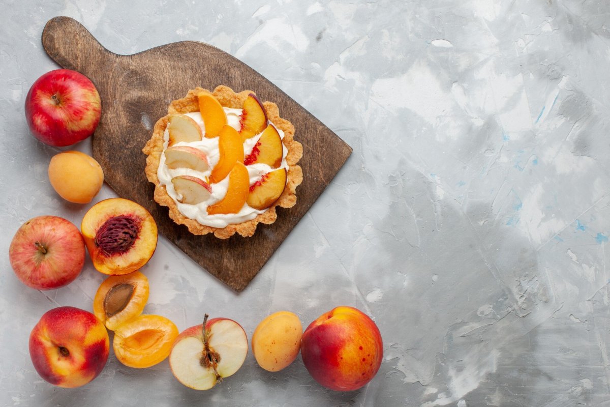 Для приготовления потребуется стакан муки, 1 яйцо, 100 граммов сахара, 50 граммов сливочного масла, 100 мл кефира, чайная ложка разрыхлителя, 2–3 персика, соль. Персики в рецепте можно заменить на любые другие фрукты или ягоды.