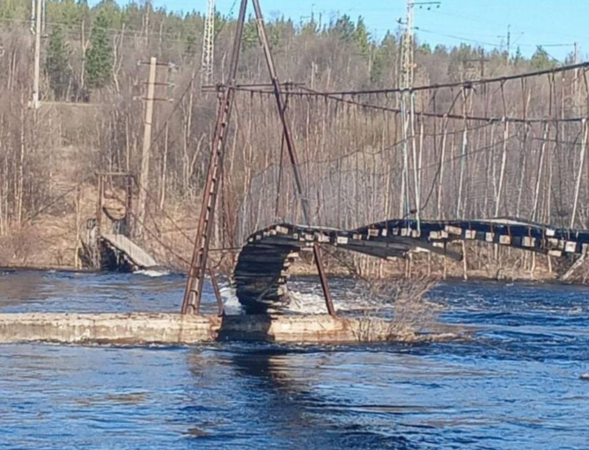 Подвесной мост к ж/д станции «Лопарская» оборвался из-за напора реки Кола. Об этом сообщают очевидцы в социальных сетях.
