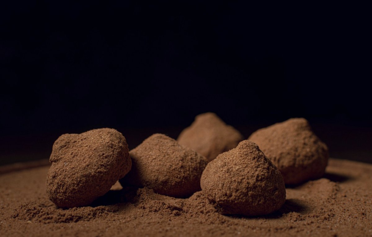 Достаём охлаждённую массу и из маленьких частей катаем шарики. Каждый шарик обваливаем в какао. Перекладываем на тарелку, и можно кушать! Хранить такие трюфели надо в холодильнике.