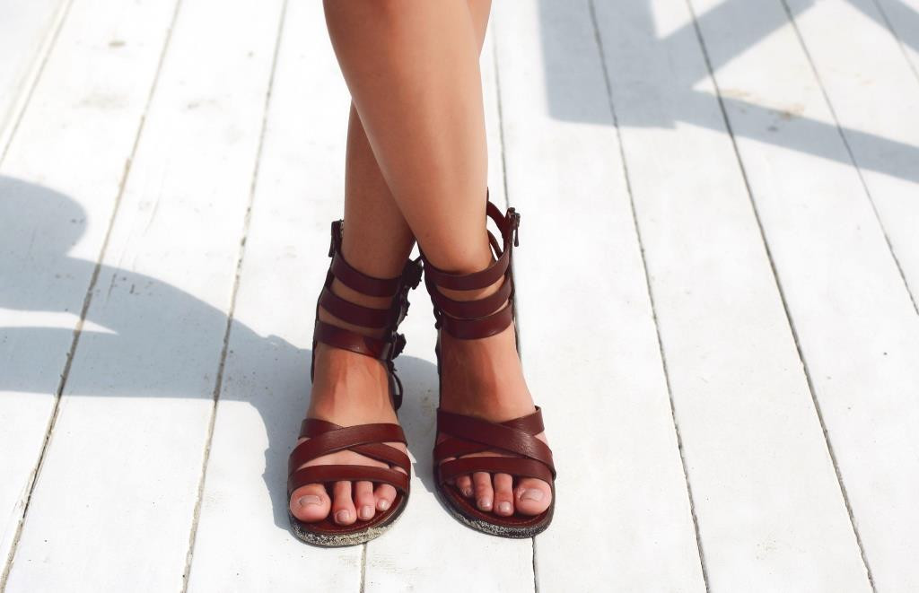 — Ремни вокруг щиколотки — это классика, подчёркивающая изящество. Главное — чтобы они не «перерезали» ногу визуально.