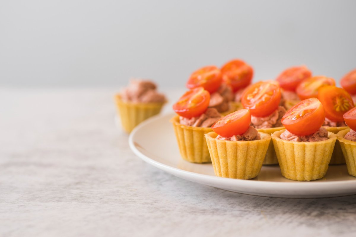 Посыпаем сверху тёртым сыром. Чтобы придать корзиночкам яркий вид, сверху можно уложить половинки помидоров черри. Убираем в духовку и выпекаем около 20 минут при 180 градусах. Может потребовать меньше времени: всё зависит от того, через сколько расплавится сыр.