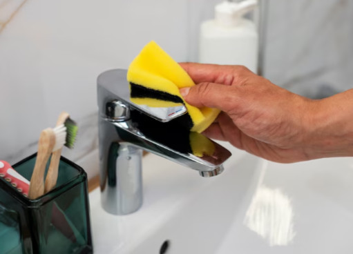 Как только они растворятся, нужно будет смочить в воде губку и натереть раковину. Через 5 минут можно смывать всё чистой водой.