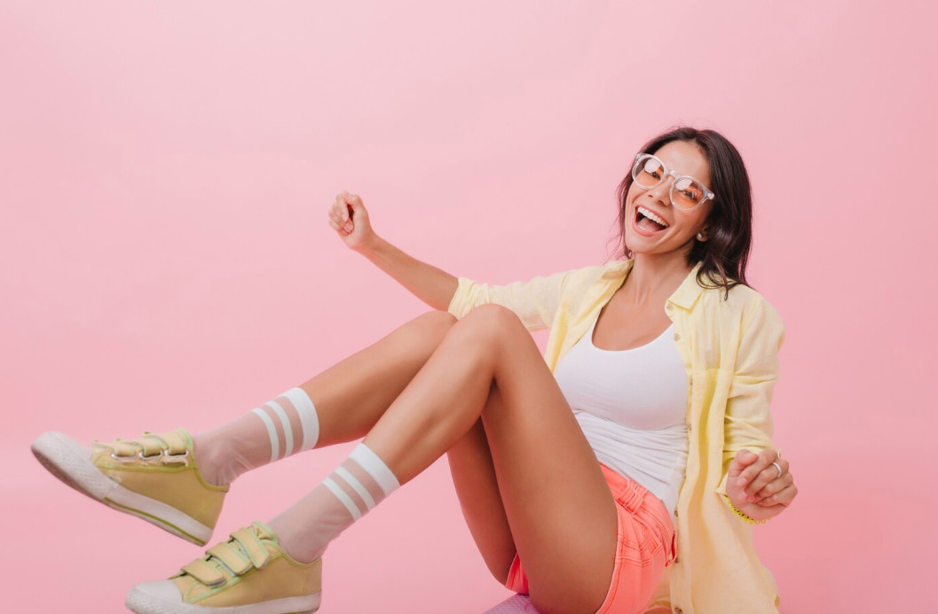 В кафе, парках, на набережных все чаще видишь, как носки сочетают с чем угодно: кедами, кроссовками, даже сандалиями. Прошлым летом пиком популярности были спортивные модели с контрастными полосками — их и сейчас носят, но уже с джинсовыми шортами и легкими ветровками. Но все чаще можно встретить однотонные, в рубчик.