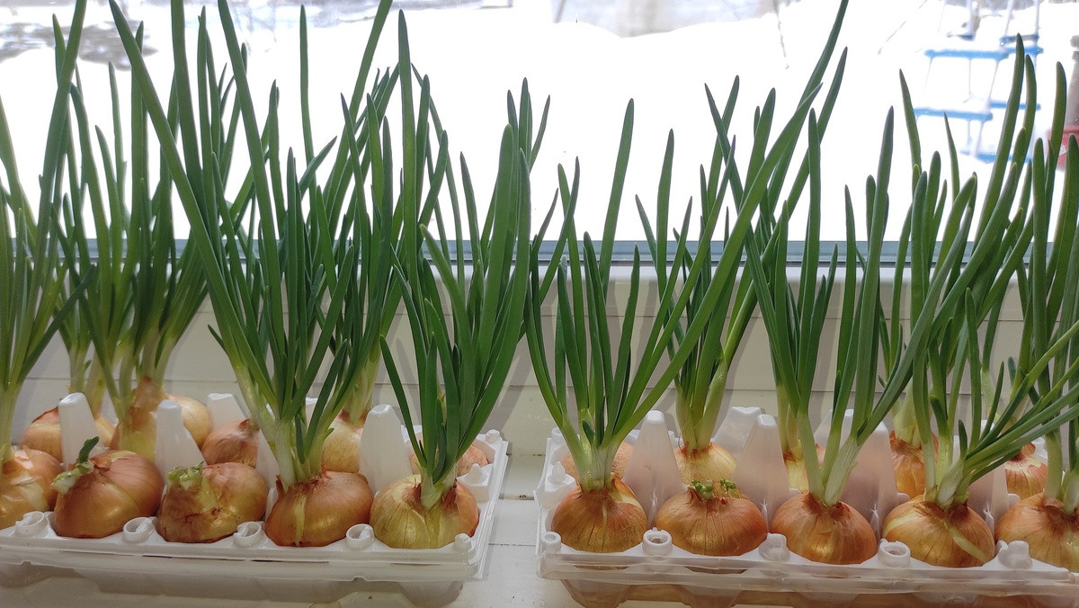 Яичные лотки, вода и лук — зелень на подоконнике без земли и горшков