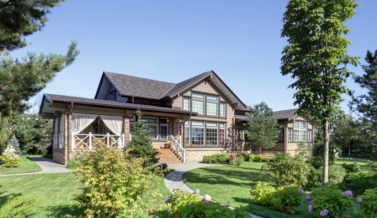 Интересно, что строили не на пустом месте. На участке сначала снесли старый дом, а после поставили новый прямо на фундамент старого, добавив шикарную веранду. Снаружи дом смотрится по-европейски аккуратно, но с русским размахом. Особенно выделяется крыша разной высоты над центральной частью, придающая дому особый шарм.