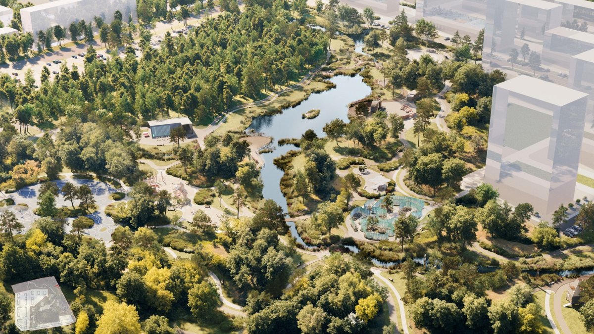 В соответствии с разработанной концепцией территория парка будет разделена на функциональные зоны, каждая из которых будет выделяться своими особенностями. В западной части появится просторная событийная площадь для проведения мероприятий, зимних ярмарок и размещения катка.