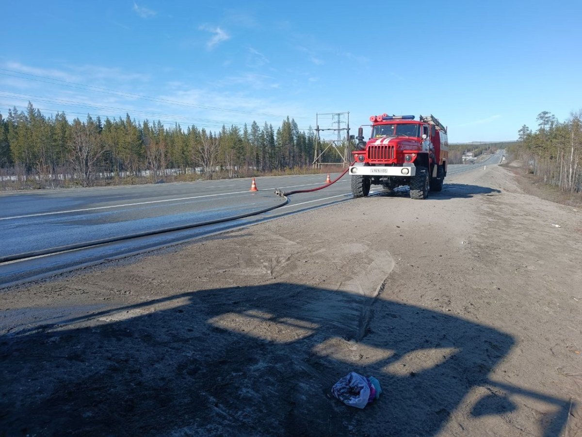 Личный состав Управления по ГОЧС и ПБ Мурманской области осмотрел место ДТП и провёл работы по сбору информации. Причины происшествия установят сотрудники Госавтоинспекции.