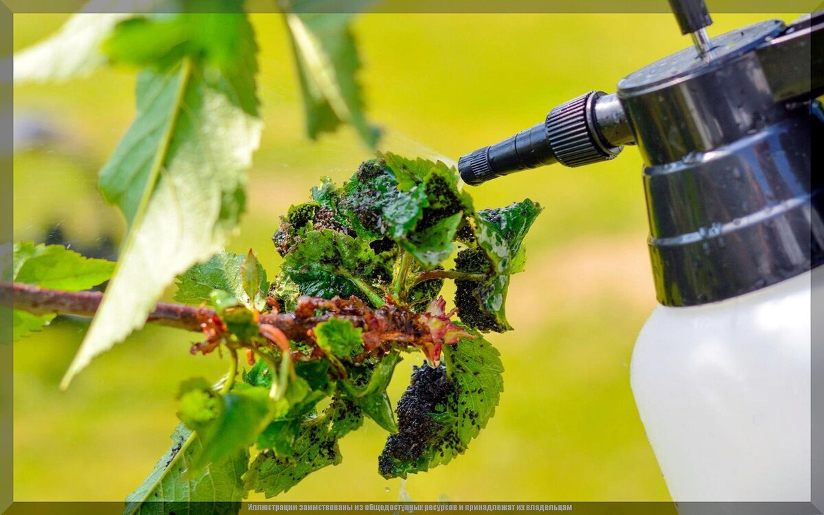 Этим раствором опрыскать растения, на которых сидит тля. Особенно важно попасть на нижнюю сторону листьев и в те места, где ветки соединяются — там вредитель любит прятаться.