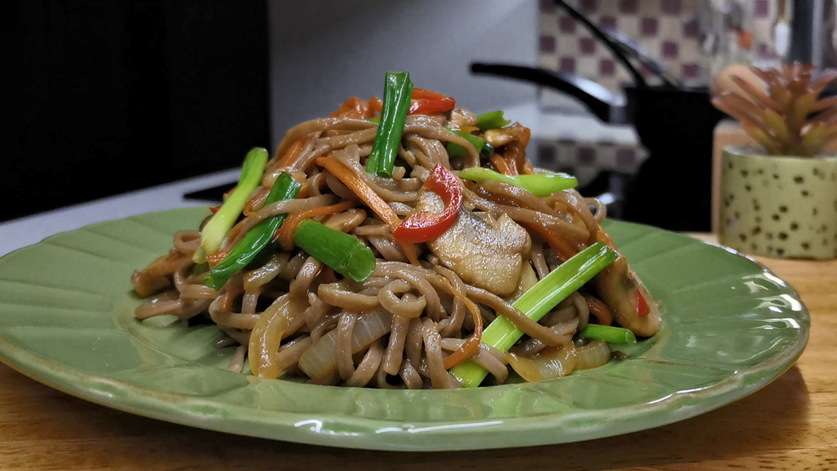 Простой рецепт грибной лапши с овощами по тайскому принципу: быстрое обжаривание ингредиентов на сильном огне с соевым соусом