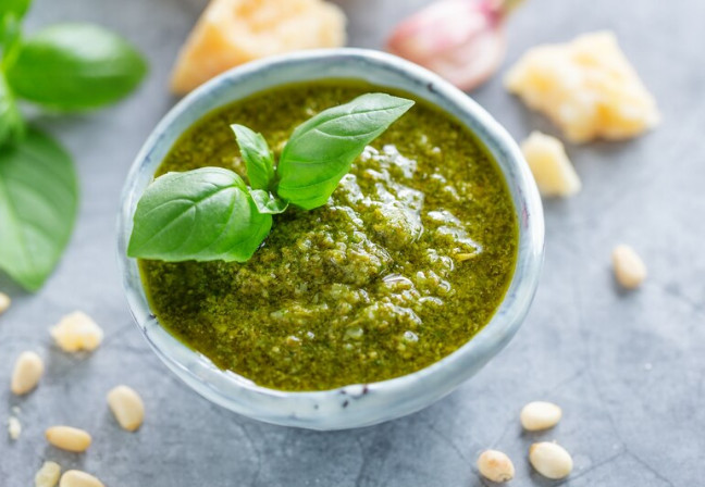 Соус песто (pesto — означает «растолчённый») — это классический итальянский соус из базилика, чеснока, кедровых орехов, пармезана и оливкового масла, который подходит как заправка к салатам, как соус к пасте, как самостоятельное блюдо на брускеттах. В Италии он считается настолько культурной ценностью, что в Генуе даже проводят чемпионат мира по приготовлению песто.