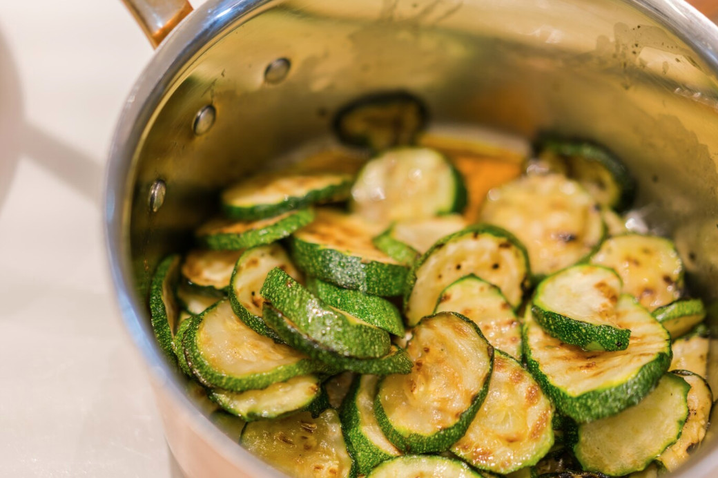 В маринаде овощ нужно оставить всего на 5-7 минут. Структура за это время укрепится, но при этом кабачки не будут слишком кислыми.