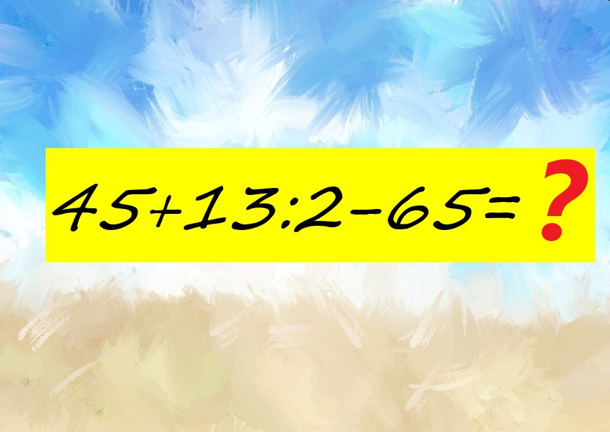 Представляем вашему вниманию математическое задание, которое подергает за нервы большинство взрослых. Вычислите устно 45+13:2−65 так, чтобы не краснеть при проверке.
