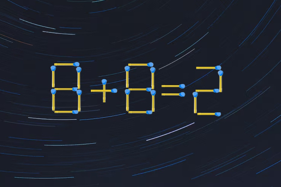 Взгляните на иллюстрацию, перед вами равенство, составленное из спичек. В пример «8+8=2» закралась ошибка, вам предстоит переставит одну спичку так, чтобы запись стала верной.