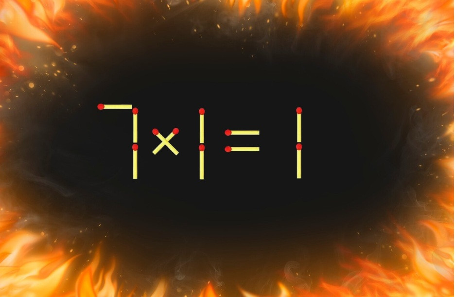 Представляем вашему вниманию спичечное равенство. В записи «7×1=1» явно содержится ошибка. Исправьте равенство, переместив всего одну спичку.