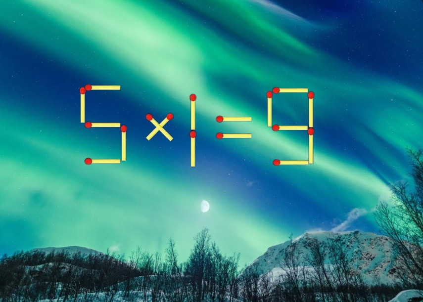 Внимание на изображение, мы подготовили для вас загадку со спичками. Пример «5×1=9» намеренно составлен с ошибкой, но перемещение одной спички исправит эту ситуацию. Отыщите верный способ.