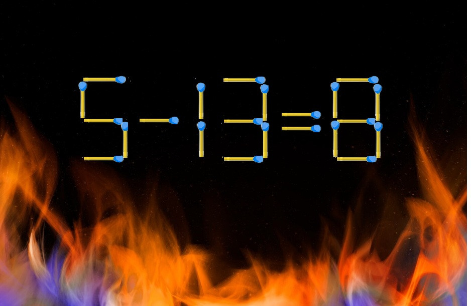 Новичкам придется непросто в поиске нужного решения, посмотрите на ситуацию шире. Переместим спичку из равенства в само действие и получим запись «5=13-8». Вуаля!