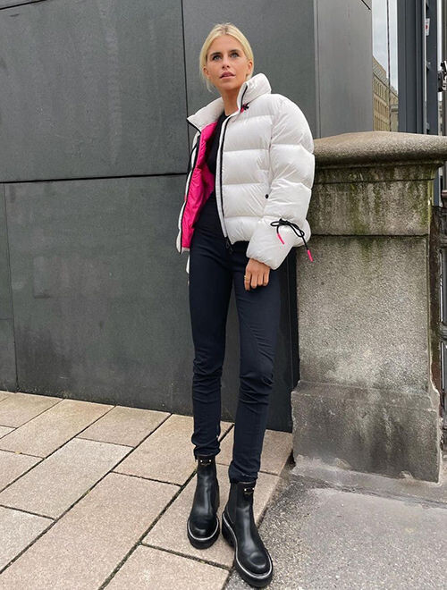Третье. Кожанка, джинсы и обувь из прошлого. Забудьте об этом. Возьмите косуху побольше, клешеные джинсы или классику, и ботильоны с острым носом.