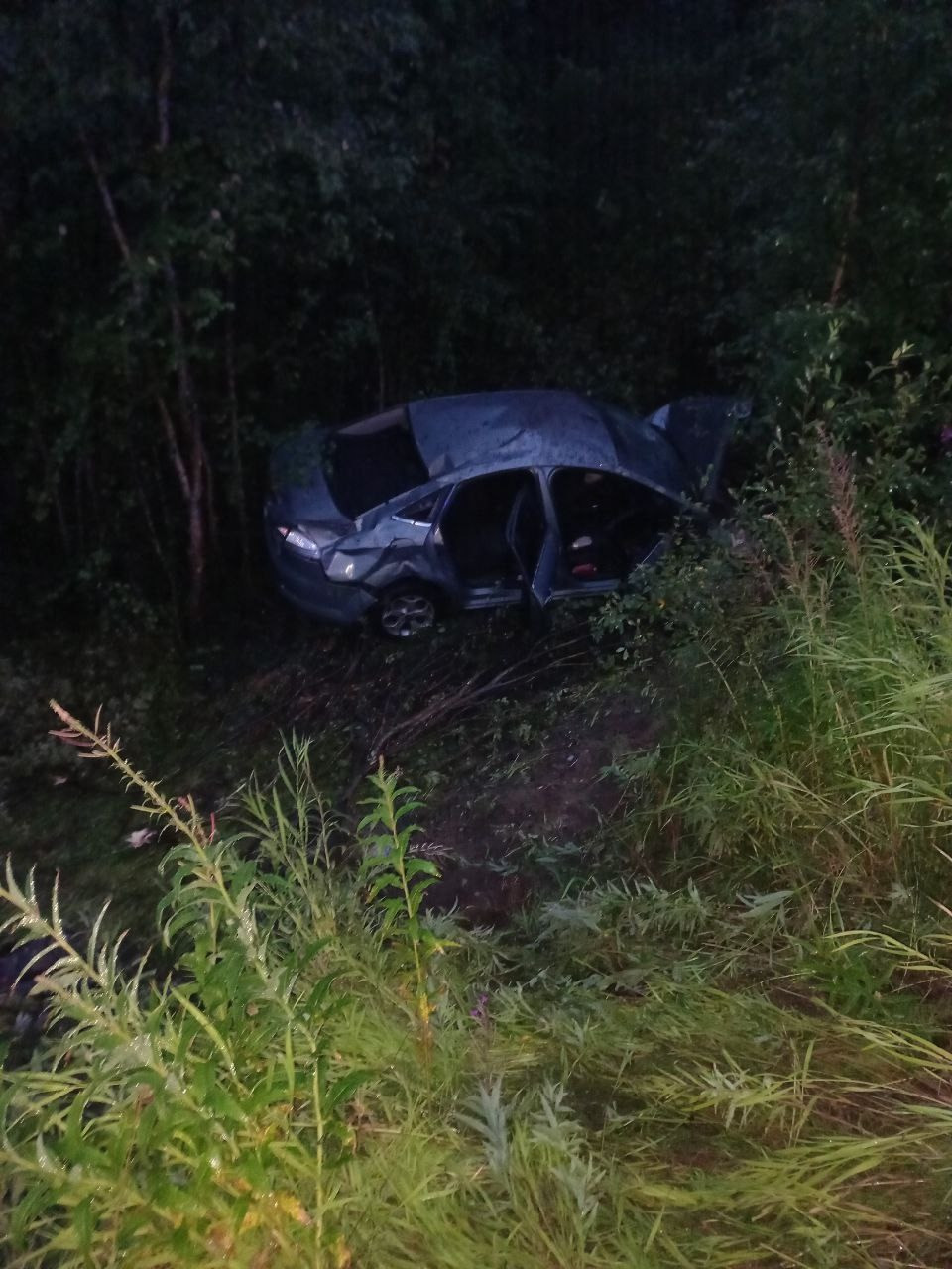 Сначала в 21.22 в тревожные службы поступило сообщение о съезде в кювет и последующем опрокидывании там автомобиля Hyundai Solaris. ДТП произошло на 1330 км автодороги «Кола» недалеко от отворотки на Тайболу. С места аварии госпитализированы два человека.