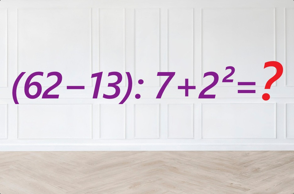 Сперва упростим нашу степень: 2²=4. Вычитание в скобках станет вторым действием: 62-13=49. Смелее беритесь за деление 49:7=7, вы в одном шаге от победы. Складываем 7+4=11, верный ответ продемонстрирует ваши успехи.