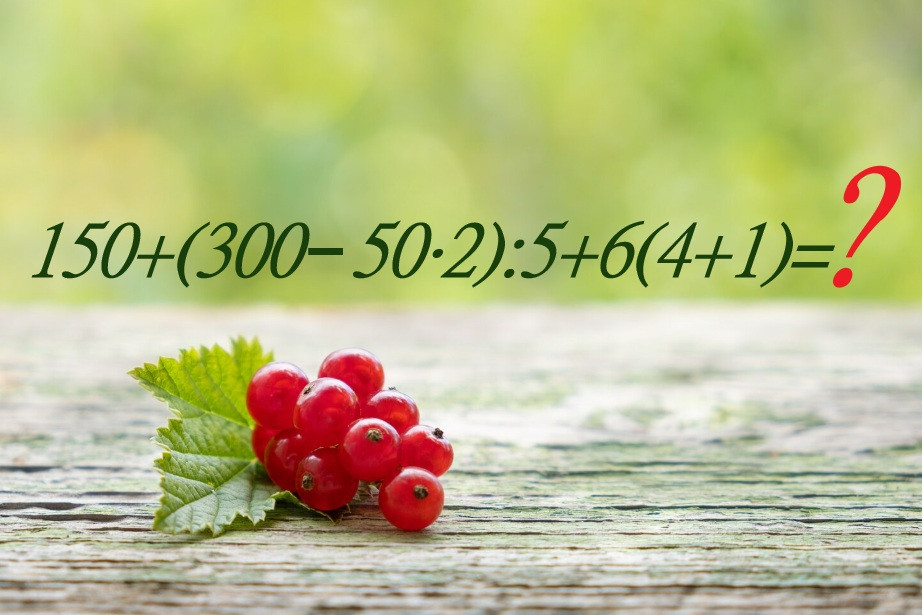 Прямо сейчас мы предлагаем вам пройти проверку на уровень IQ. Пример для устного счета 150+(300−50×2):5+6(4+1) показан на иллюстрации, только калькулятором пользоваться запрещено. Сосредоточьтесь на числах, если вам важен успех.