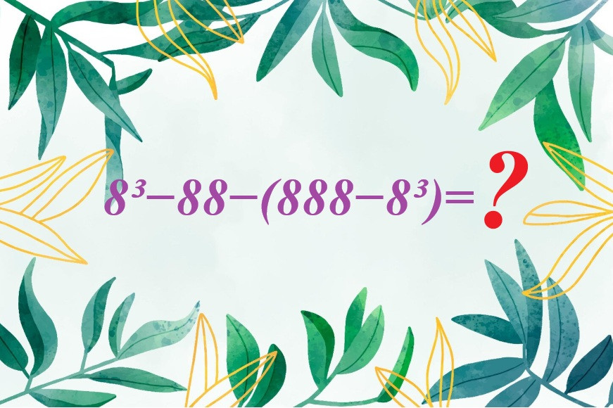 На иллюстрации показан хитрый пример для устного счета. Вычислить 8³−88−(888−8³) без ошибок смогут только те, кто не забыл, как правильно обращаться со степенями. Вместо калькулятора включите мозг на всю катушку.