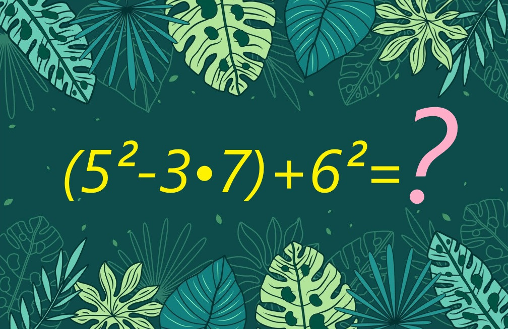 Предлагаем вам пример для устного счета. Задание (5²-3•7)+6² ждет вас на иллюстрации, только не берите в руки калькулятор. Личные достижения стоят больше, чем подсказки и помощь искусственного интеллекта.