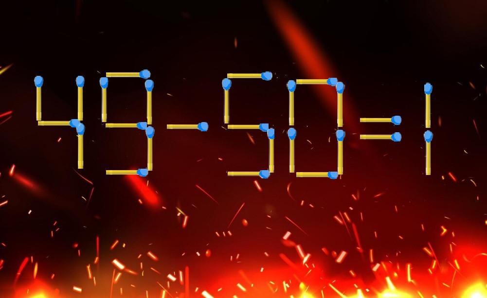 Новичкам придется непросто в поиске верного ответа. Если смекалка вас не подведет, то вы заметите, что можно поменять местами знаки в этой записи. Переносим спичку из знака равенства в вычитание и получаем корректный пример «49=50-1» Вуаля!