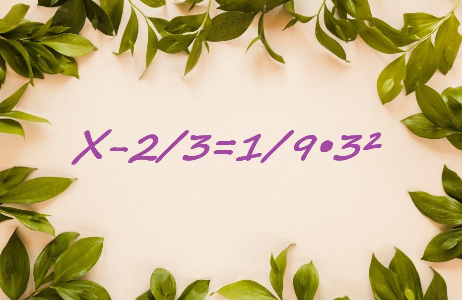Представляем вашему вниманию школьное уравнение. На иллюстрации показана запись Х-2/3=1/9•3², вам необходимо найти неизвестное. Если уроки математики позабылись, давайте продвигаться к ответу вместе.