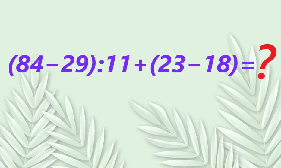 Внимание на иллюстрацию, выражение (84−29):11+(23−18) ждет верного ответа. В средней школе подобные вычисления выполняют регулярно, значит, и в вашем солидном возрасте грех жаловаться. Лучше сконцентрироваться на числах.