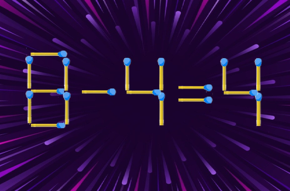 Представляем вашему вниманию загадку со спичками. На иллюстрации показано верное равенство «8-4=4». Вы будете удивлены, но можно переставить одну спичку в записи так, чтобы правила арифметики не пострадали. Отыщите нужный способ.