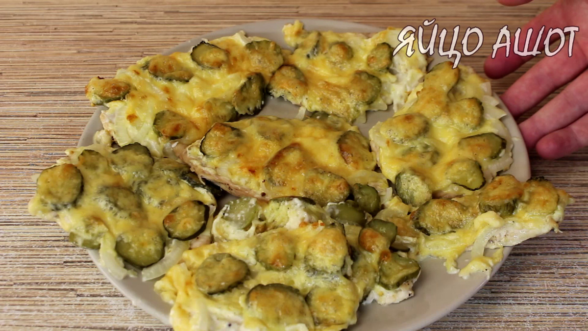 Простой рецепт куриной грудки в духовке под слоем лука, огурцов и сыра, чтобы мясо всегда получалось сочным. Блюдо готовится быстро и подходит для любого ужина