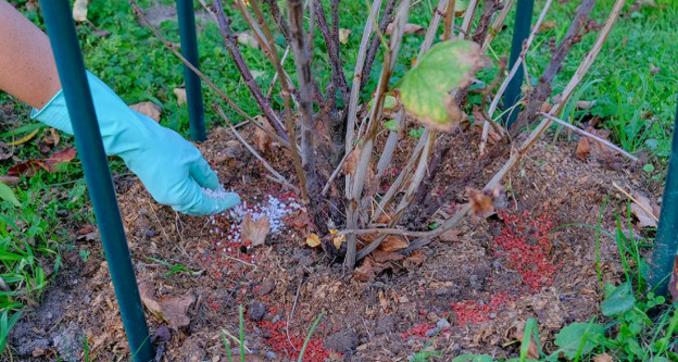 Блогер предлагает использовать гашеную известь. Берете стакан (200-250 граммов) гашеной извести на взрослый куст. Рассыпаете равномерно вокруг ствола, отступив от него сантиметров 20-30, чтобы не обжечь корни. Слегка заделываете граблями и хорошо поливаете.