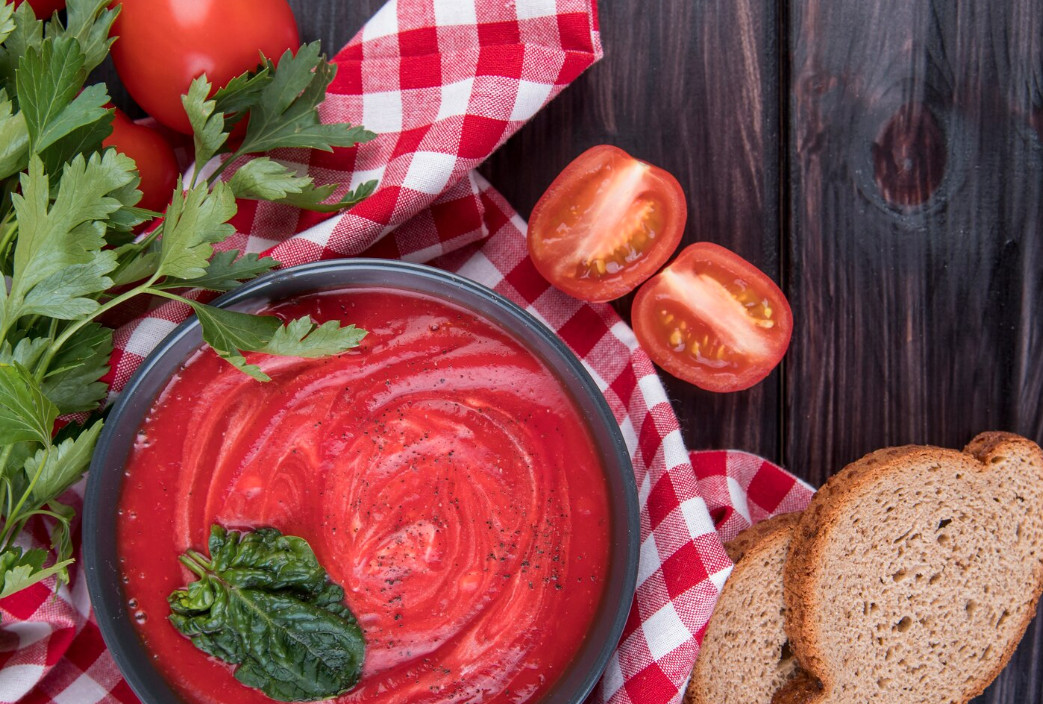 6 килограммов получившейся массы из томатов нужно добавить в кастрюлю с толстым дном. Когда они закипят, наблюдайте за тем, как отслаивается сок — его необходимо собрать. Так получится максимально густое пюре примерно через пять минут. Протрите массу, чтобы получился нежный однородный соус.