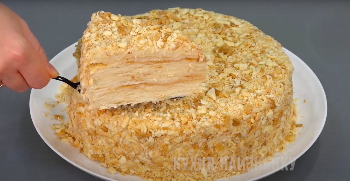 Простой рецепт торта «Наполеон». Коржи не крошатся и не расползаются, а крем получается нежным.