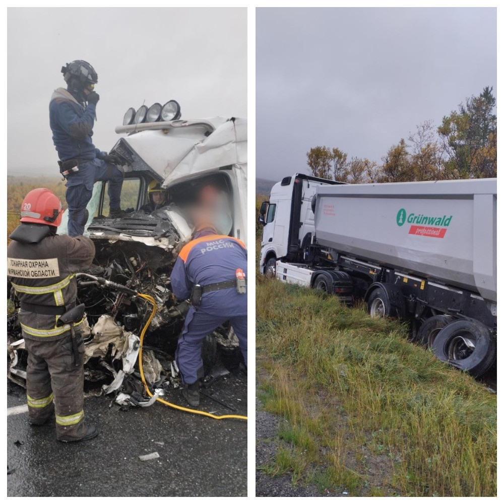 В Кольском округе в районе 1412 км трассы "Кола" произошло столкновение микроавтобуса Mercedes-Benz Sprinter с грузовым автомобилем Shacman X-6000. В результате ДТП микроавтобус наехал на ограждение, а фура съехала в кювет.