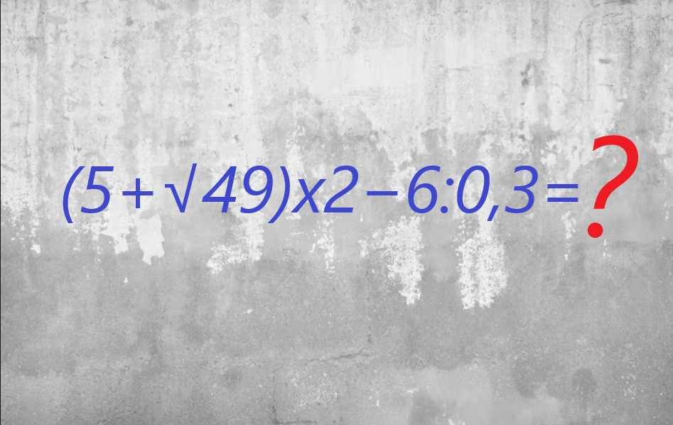 На иллюстрации вы видите пример для устного счета. Вычислить (5+√49)x2−6:0,3 необходимо без калькулятора, пользуясь собственным мозгом как компьютером. На решение дается всего 17 секунд.