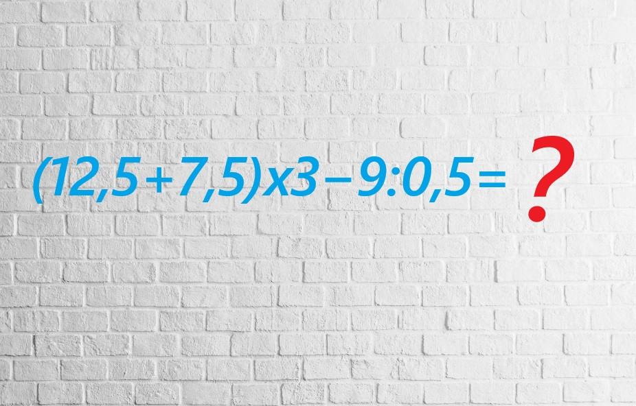 Взгляните на иллюстрацию, этот пример сгорает от желания быть решенным без ошибок. Вычислите (12,5+7,5)x3−9:0,5 за 14 секунд, если вы метите в вундеркинды.