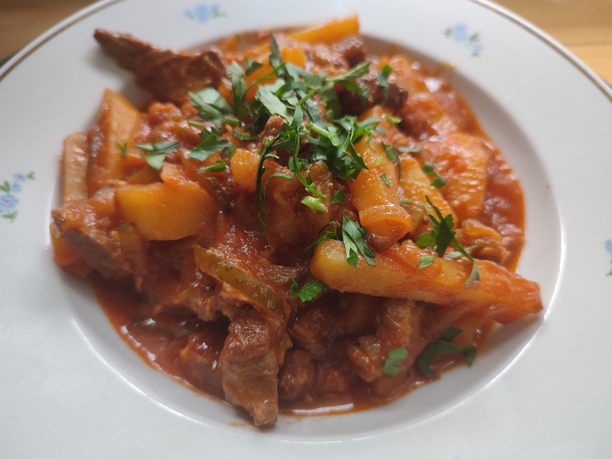 Если вы хотите приготовить азу по-татарски, то мясо должно быть не сухое — вырезка тут не подойдет, нужна говядина или баранина. Об этом пишет автор блога «Мария Сурова — рецепты и советы».