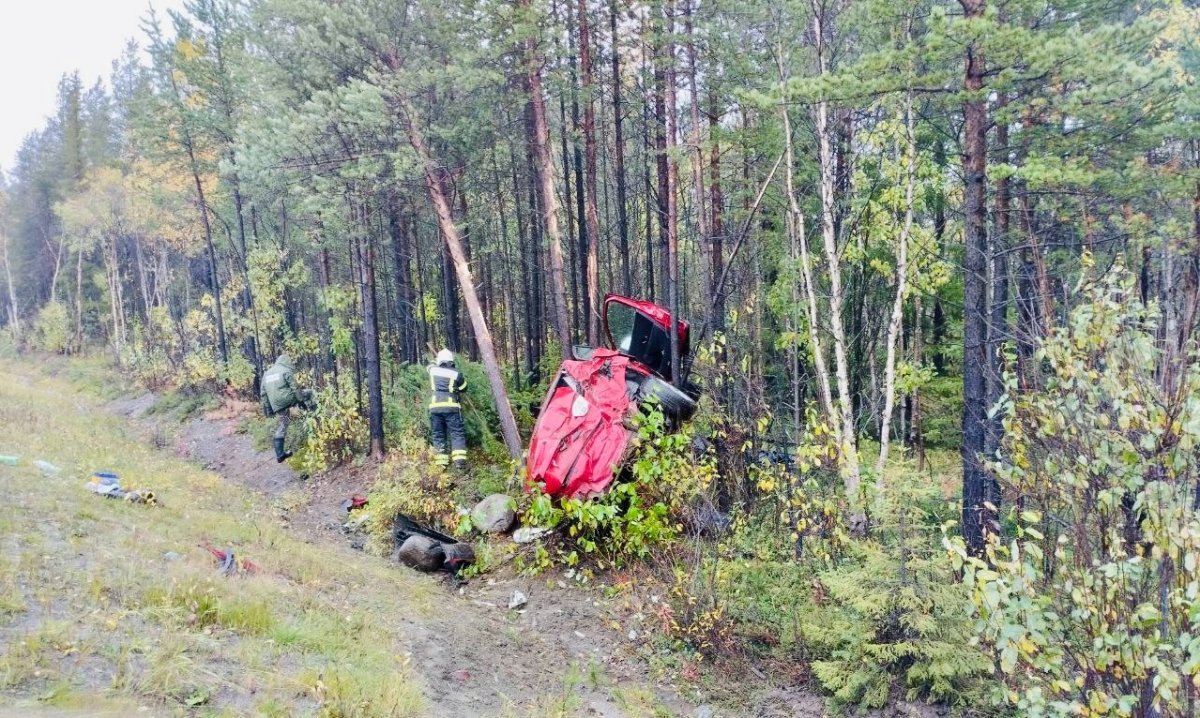 Легковая иномарка съехала с дороги и опрокинулась на левый бок. Авария случилась утром 23 сентября на участке трассы «Кола» недалеко от Магнетитов.