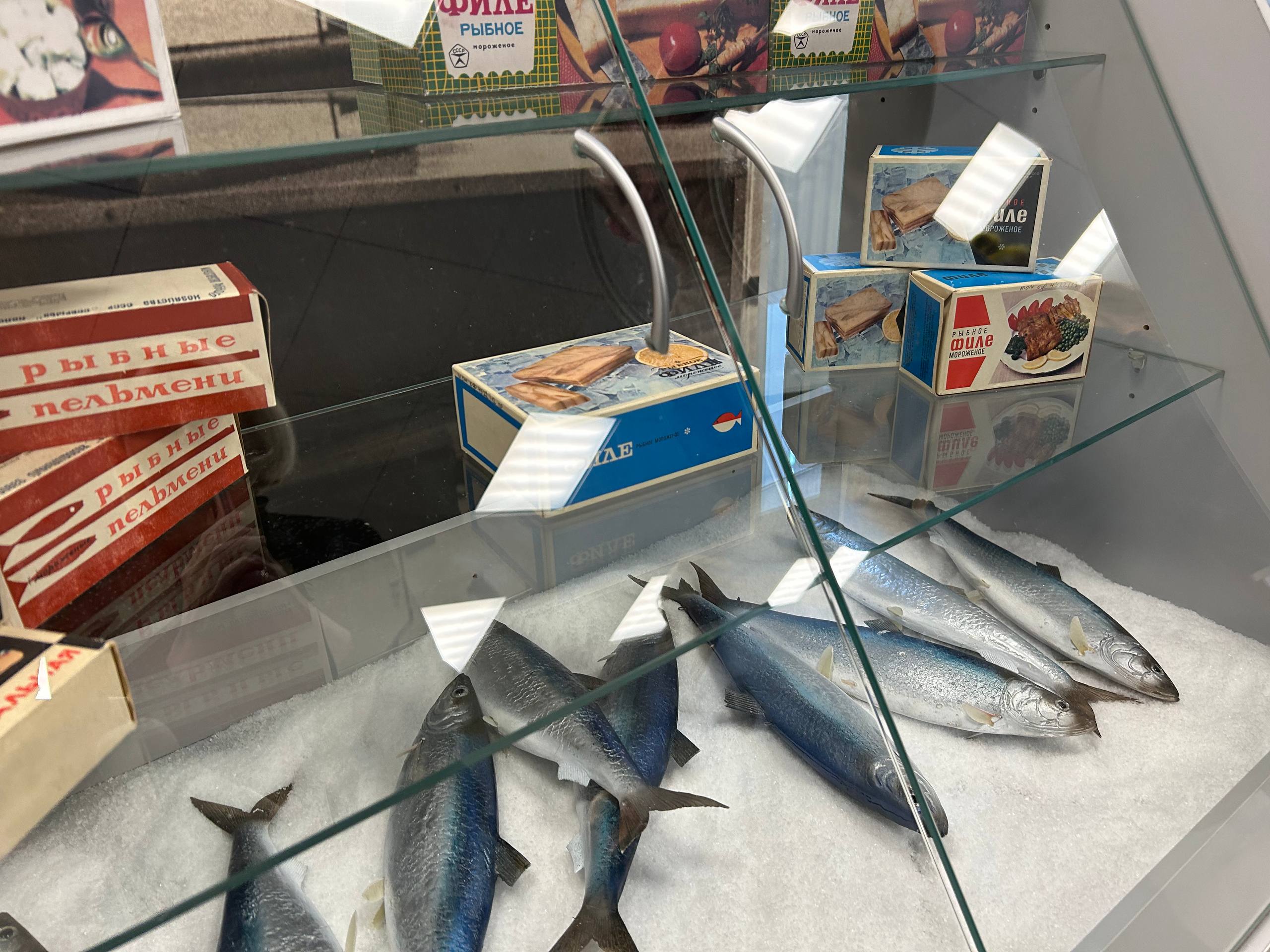 В зале музея представлены интерьеры кухни времён СССР, мурманских столовых и рыбных магазинов. Среди экспонатов – мебель, техника, посуда, одежда, упаковки от рыбных пельменей и рыбного филе, рыбные консервы, а также меню из местных ресторанов и книги рецептов.