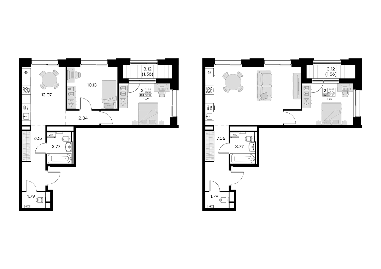 Вариативность сценариев достигается за счет небольшого количества несущих стен и продуманного расположения окон и инженерных коммуникаций — менять и зонировать пространство можно без лишних сложностей.