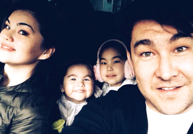 Рядом с ним жена Вика, с которой в отношениях со студенчества в Астрахани. В семье 2 дочерей и сын. Супруга Азамата казашка, как и он. Женщина моложе мужа на 3 года. Брак прочный, ему уже 17 лет.
