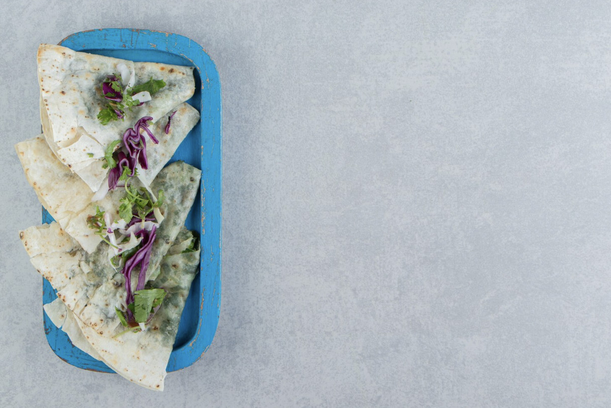 На край лаваша выложить начинку и завернуть так, чтобы получился конвертик треугольной формы.