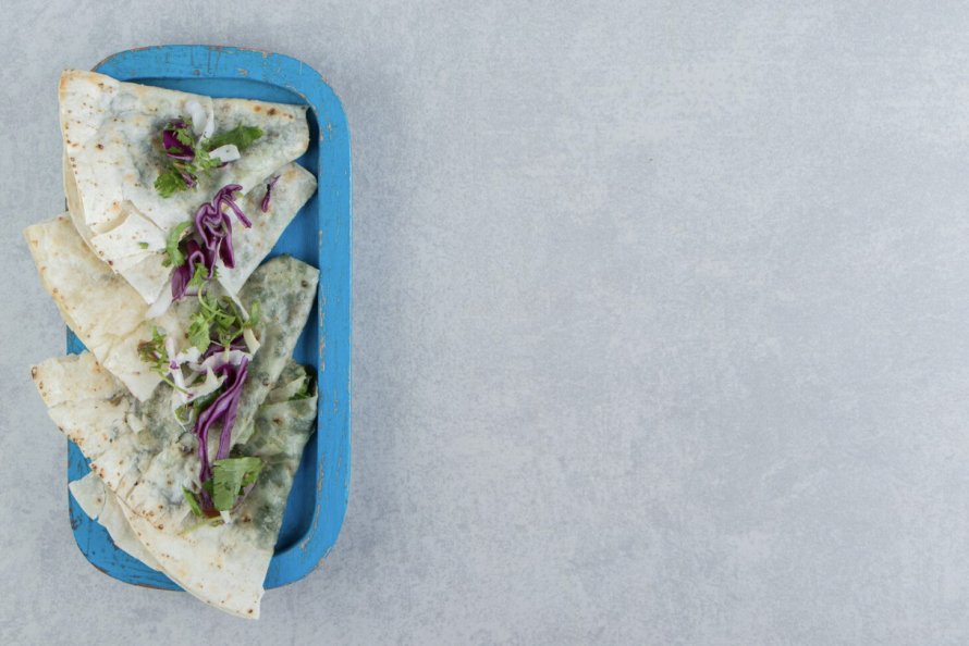 Вам понадобится 180г творога 5-9%, 150г сыра Сулугуни, 90г зелени (укроп, петрушка и кинза), щепотка гранулированного сухого чеснока, соль по вкусу, лаваш тонкий 1 упаковка